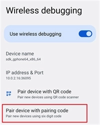 6、在【无线调试】里点击【使用配对码配对设备(Pair device with pairing code)】 。