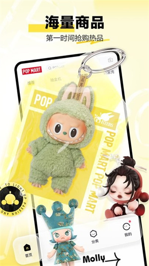 泡泡玛特是一款潮玩软件,当下最火的labubu就是旗下的品牌。线上抽盒的沉浸式体验,精准击中潮玩爱好者对盲盒惊喜感的追求,极大地提升了购物趣味性 。想要购买的可以在本软件中下单。