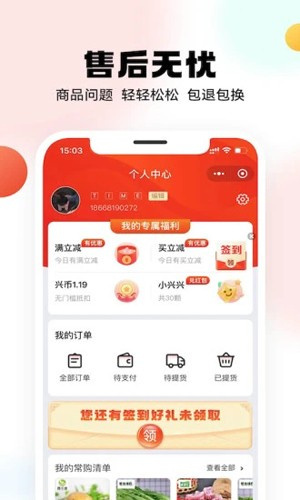 兴盛优选是一款专注于社区电商的手机应用,解决家庭消费者的日常需求,通过 “预售 + 自提” 的模式为消费者提供服务。用户购物后可获得积分,积分可在兑换中心换取礼品或优惠,增加购物的附加值。