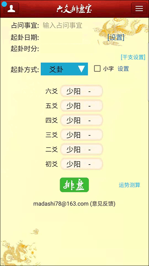 (1)具备阴阳爻排盘、钱币排盘、卦名排盘、数字排盘以及日期排盘的支持功能。