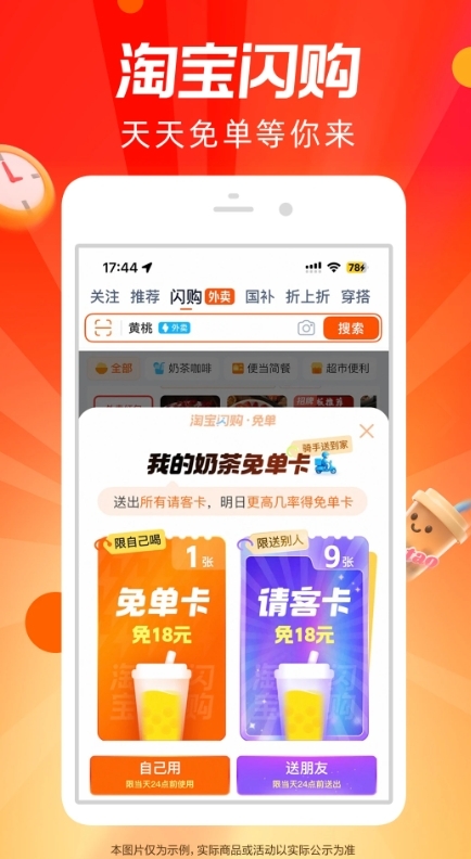 淘宝闪购是淘宝新上线的一个外卖配送平台,它依托了饿了么整体的数据平台,整合了各种类型的店铺和商品,用户可以在软件内尽情的进行各种商品的选购,并且针对新用户还推出了各种优惠的活动,所有的商家都经过了严格的审查才能入驻,用户可以放心进行购买哦,更有超多免单活动等你来参与哦,行动的朋友们快点行动起来吧!