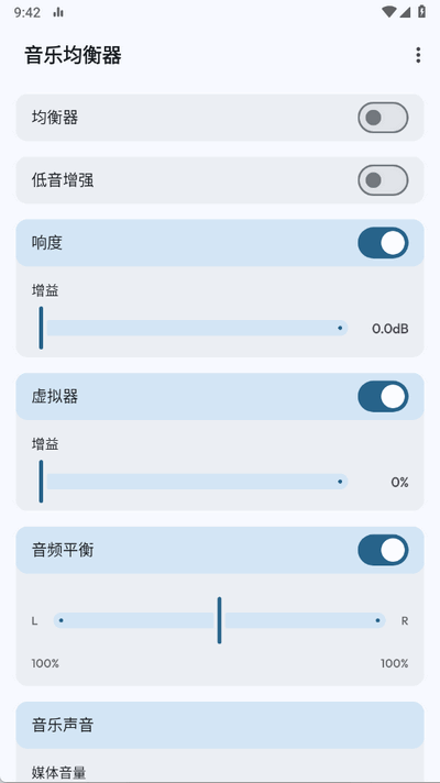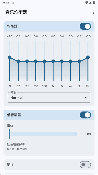 1、音乐均衡器功能:提供全面的音频效果调节,包括对各个频段的增益或衰减操作,帮助用户精准调整音质效果。