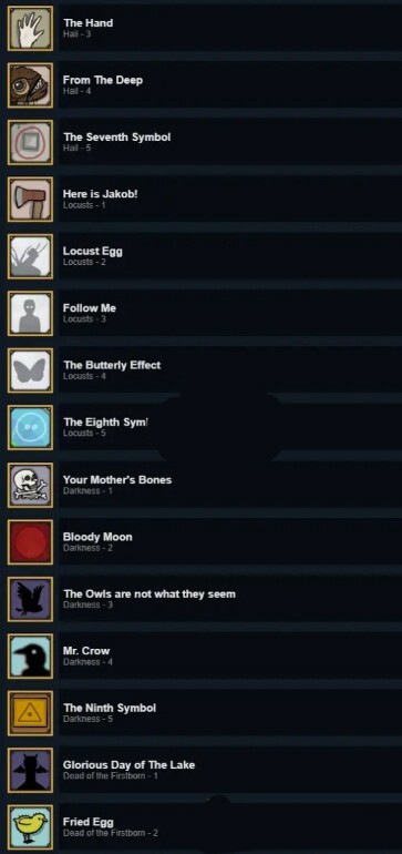 这次天堂岛游戏一共51个成就,其中50个在游戏中,游戏中一共分为十小关,每关五个小成就,一个隐藏符号成就四个如下图