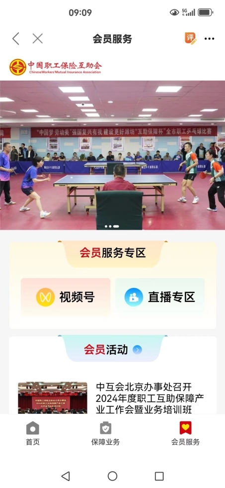 “职工之家”APP中“职工互助”板块,包含保障业务服务和会员服务项目两项服务功能。