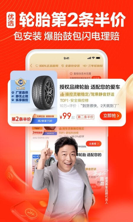 精准适配的正品轮胎,输入车型即可自动适配,超300座城市超万家门店免费安装。