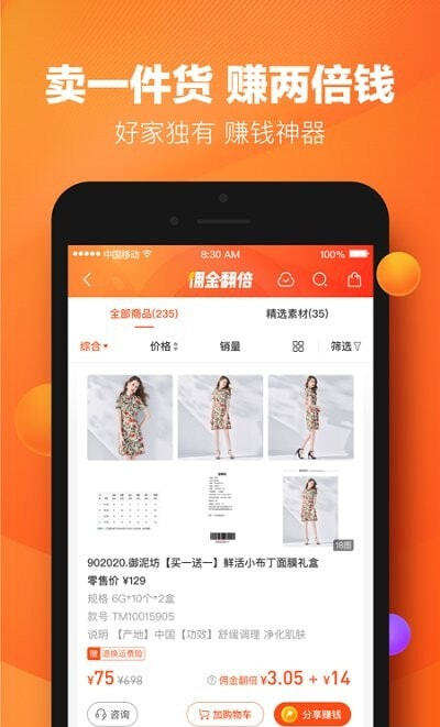 一键生成单件、多件商品图片及文案,分享便捷;