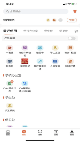 生活服务:宿舍报修、校园卡、食堂菜单、校车时刻