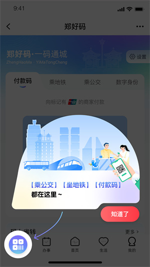 郑好办app官方版打造了全新 “生活” 独立首页,集合了消费券、亲子卡、科技馆预约、水电气暖等多个事项。提炼出 “消费补贴、汽车服务、惠民保险、生活补贴” 四个类目,提供旧房改造补贴、审车预约、学平险投保等服务。同时,“好券天天领” 版块每天发放审车、亲子卡等超值优惠券。全新升级后的郑好码,点击即可快速唤起地铁乘车码,后期还将陆续开通 “付款码” 和 “乘公交” 功能。
