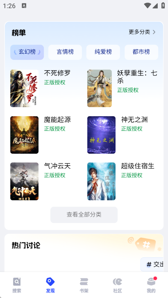 1.海量书库:提供丰富的正版小说资源,涵盖玄幻、仙侠、言情、都市、历史、科幻等多种分类。