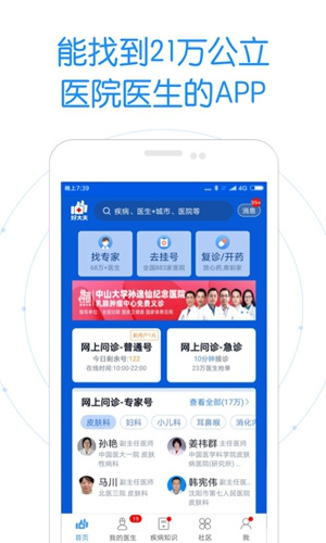 好大夫在线问诊是一款专注医疗领域的在线问诊软件,致力于为患者提供便捷的远程医疗服务。用户可以查医生擅长领域、看评价后选择医生,通过图文、电话、视频等形式与全国三甲医院专家本人进行沟通,获取咨询建议或诊疗方案。