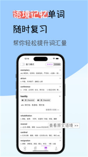 点击即可查看遇见的生词并收藏,在生词本中可以随时跳转定位到生词在文章中出现的位置,通过回看语境加深对词汇的记忆