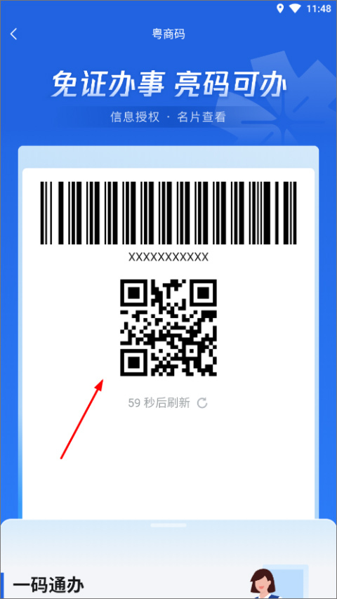 2、登录账号后即可看到自己的粤商码;