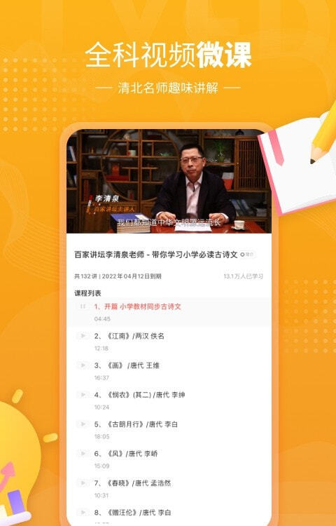 视频课程涵盖小学语文、数学、英语、科学等多个学科。紧贴教育大纲,短视频教学,将知识合理碎片化,3-10分钟即可攻破一个知识点。