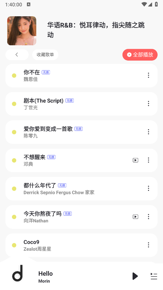 魔音Morin是一款音乐资源丰富的播放软件,支持多种不同的播放源进行切换,无损音乐不仅可以在线听,还能下载到本地音乐,想听的时候随时都可以开启。在软件界面搜索音乐名字,可以快速找到音乐资源,简约清爽的音乐播放器,支持播放超多音乐作品,好听的歌曲在线听。解锁付费音乐免费听,过滤掉烦人的过高,更有音乐排行榜每天都在更新,热门歌曲、抖音神曲、新歌上榜等多种类型可以选择,每天不定时进行更新好听的音乐。高品质无损音质,热门歌曲这里都能找得到,喜欢听歌的用户欢迎下载体验。