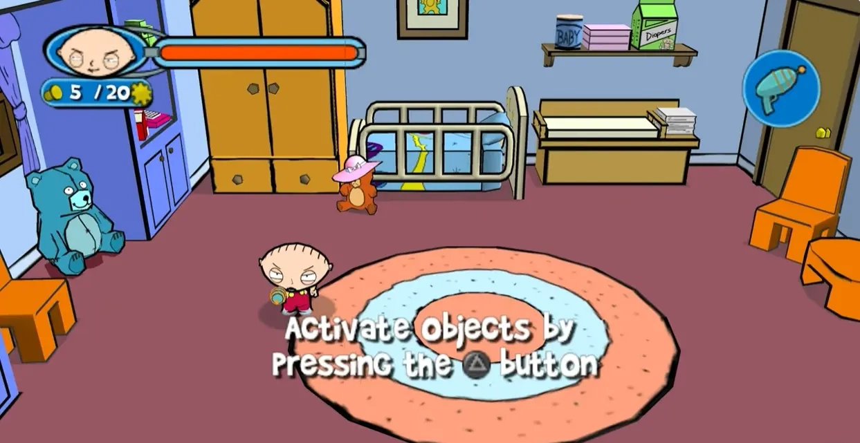 1游戏开场便是火鸡与彼得·格里芬展开大战,一番惊天动地的激战后,当玩家点击救起彼得的瞬间,游戏才正式拉开帷幕。