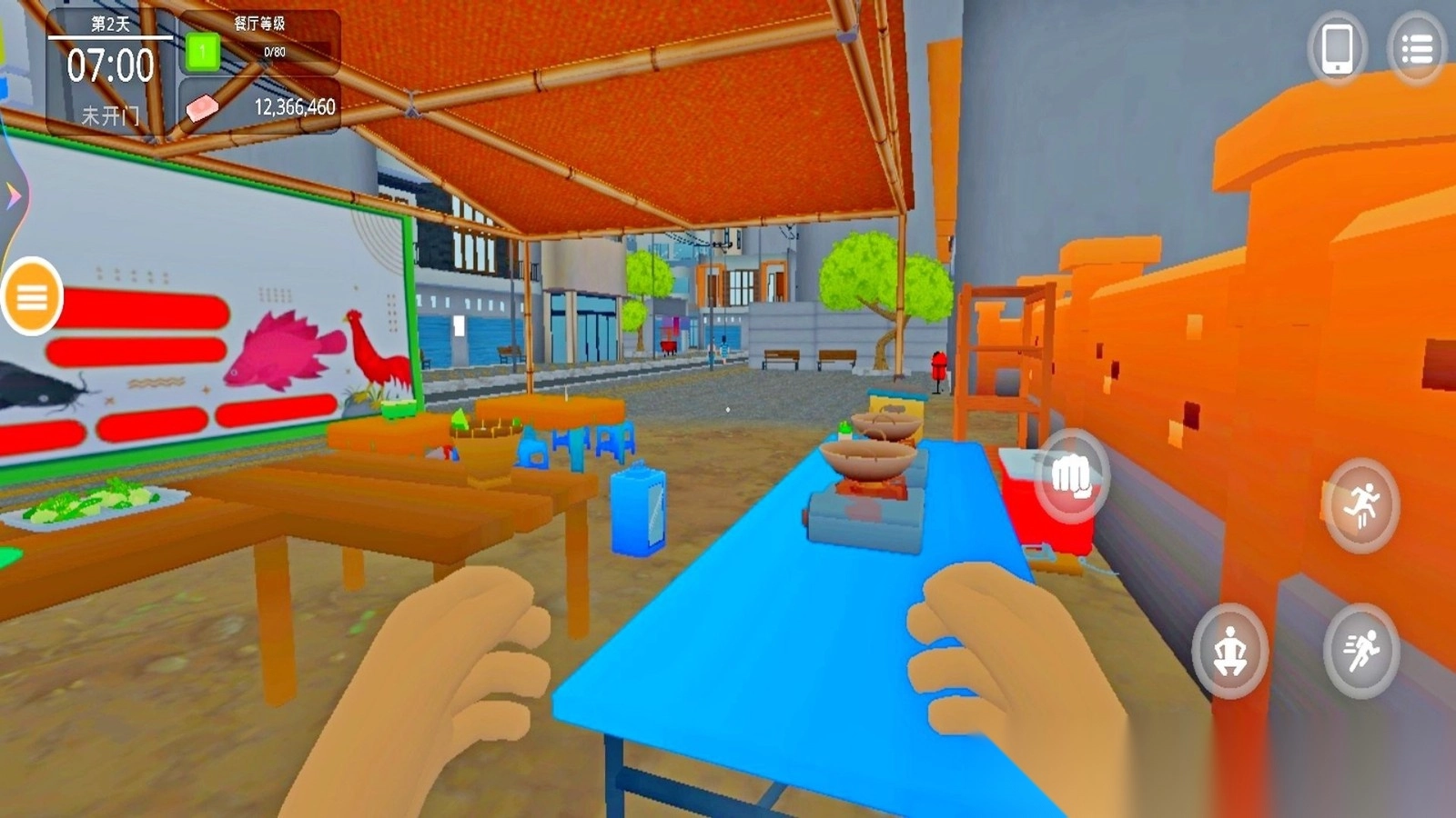 3. 随着等级提升可以扩张摊位规模,雇佣员工帮忙,最终发展成拥有多个档口的美食广场。