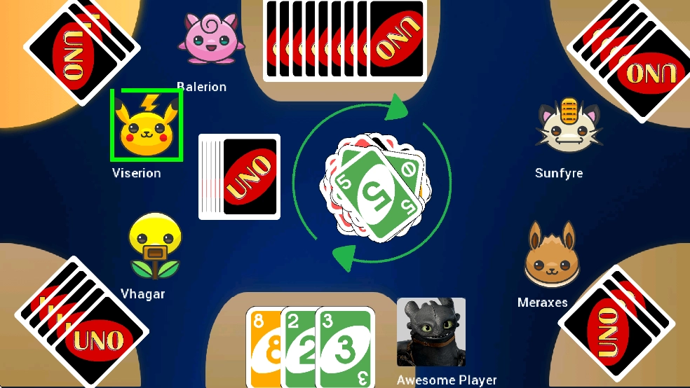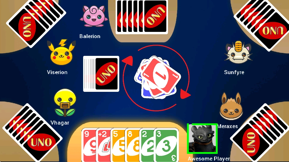 游戏起始于庄家左边的玩家,按顺时针方向推进(“反转”牌改变顺序的情况除外)。