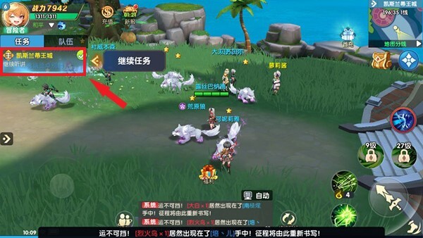 玩家点击屏幕左边任务内容图标,游戏人物就会自动接取任务,以及自动寻找任务地点。