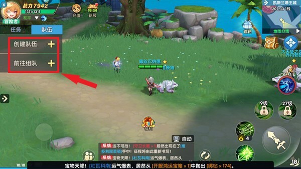 玩家点击左方队伍按钮,可以自己创建队伍或者加入别人的队伍。