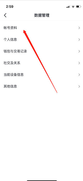 4、点击【账号资料】