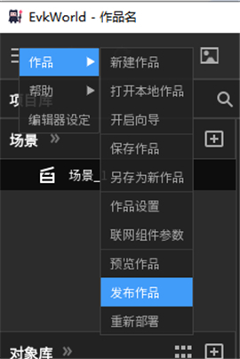 1、打开唤境软件编辑器,左上角发布作品就可以把游戏打包。