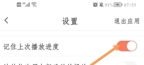 第三步,下拉页面至【记住上次播放进度】,将后面的开关关闭,关闭后,再次进入应用使用播放器时,应用就不会继续历史播放进度,会关闭上次播放进度记录,重新从头播放新音频,无需手动操作。