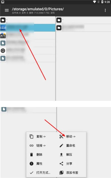 2、然后找到移动的要移动的目录,此时在右侧,打开要移动到文件的目录。(此时左侧与右侧的目录是一样的,相等的,相当于打开了两个窗口。类似win上的管理器两个窗口)