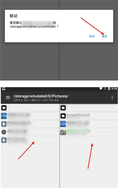 4、点击是,那么即可移动文件,从左侧的一个窗口移动到右侧的窗口上了的。