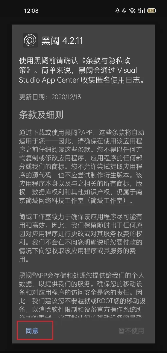我们打开黑阈,点击同意。