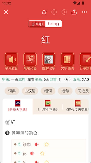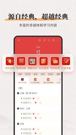 2、标准规范:提供标准发音与笔顺动画,帮助用户学标准发音、写规范汉字、说标准普通话,纠正发音和书写习惯。
