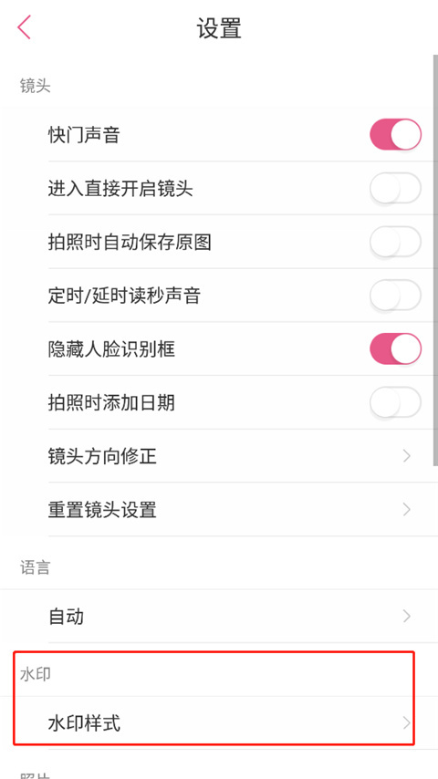 1、在个人界面点击相机设置,找到水印设置功能,点击水印样式。