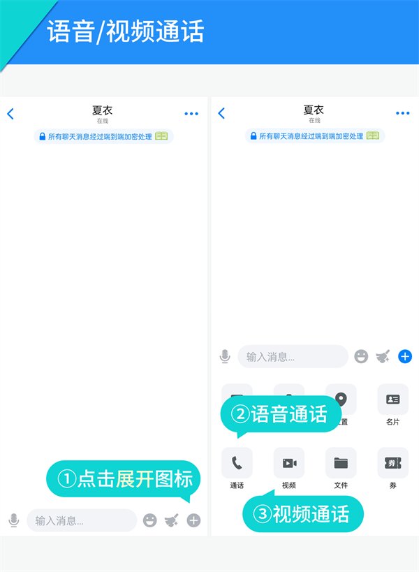2、支持文字、图片、语音、视频通话等多种聊天形式