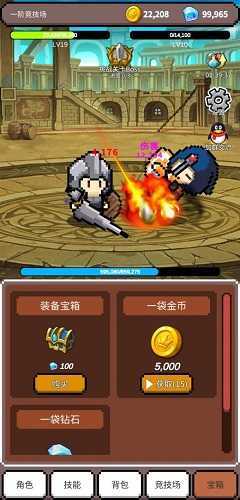 b、像素风格的游戏画面以及轻松休闲的挂机对战玩法、初次冒险都让人惊艳;