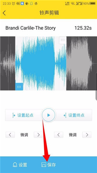 进入铃声编辑界面后,你可以对铃声进行剪辑或其它调整,当完成编辑后,点击底部的保存按钮。