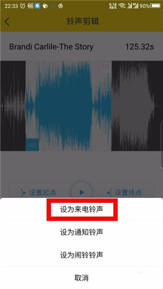 弹出的页面中,可以看到一个设为铃声的选项,点击该选项。