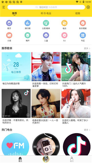 打开酷我音乐手机版,进行登录后进入主页面。在这里,你可以找到各种类型的歌曲供你选择和收听。