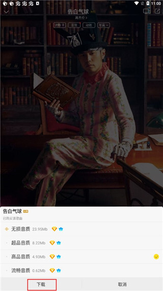 4、如果你想要下载歌曲到本地,可以点击下载按钮,并选择你所需的音质进行下载。