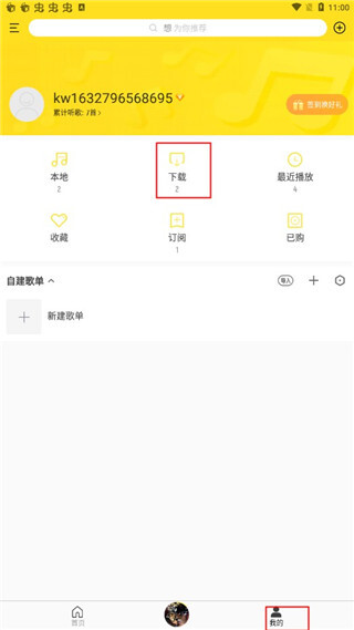 5、在酷我音乐手机版的"我的"页面,你可以收藏你喜欢的歌曲,在本地音乐库中查看歌曲记录等。