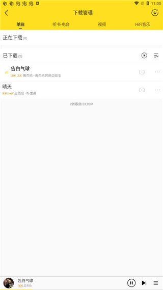 6、如果你已经下载了一些歌曲,你可以在下载页面找到它们。这样,你就可以离线听歌了。