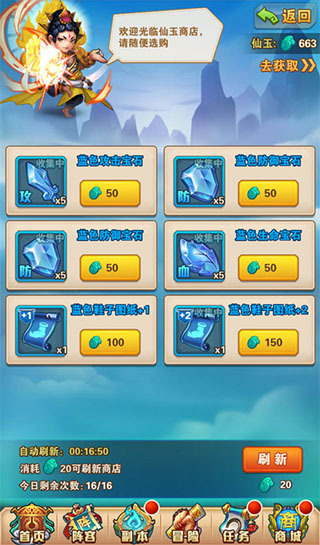仙玉可以在“仙玉商店”中购买装备升品用的图纸和宝石;
