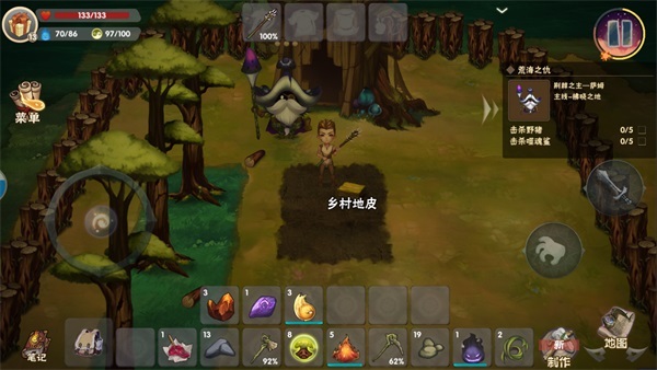 完成对话后,就可以接村长给我们的主线了。第一个超简单,帮村长把围墙里的5个矿石开采了就好。