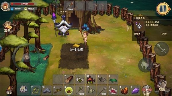完成木板任务就要去找村长了。萌新们可以跟着坐标指引线,找到地图左下角的村长萨姆。