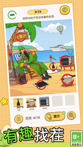 3、创新道具系统:各种道具,例如放大镜,提示箭头等,玩家可以使用这些道具来帮助找出隐藏的茬点。