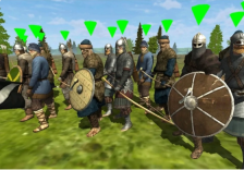 5. 进度条右边的第一个按钮可以选择士兵战斗的阵型,但是兵力少的时候这个没有多大用处。我们的角色是通过左下角的方向按钮来控制移动,屏幕上带剑的按钮是攻击键,盾牌是防御按钮,手指在屏幕上滑动调整视野。