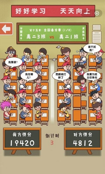 4. 题材充满怀旧感。采用经典考试题材,设定为两个班级相互比拼考试成绩。我们的任务便是助力本班学生奋力考上理想大学。班级大作战手游优势