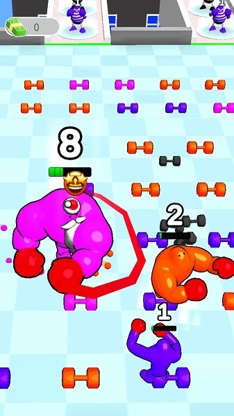 超级闯关大师是一款趣味十足的益智闯关游戏,其整体游戏画面的设计清新可爱,操作简单易懂,玩起来轻松又有趣。在游戏里,玩家要协助肌肉小蓝人拾取对应颜色的哑铃,以此获取经验值,实现不断升级进化。此外,玩家还能够通过击败其他玩家,来获取额外的进化经验值。