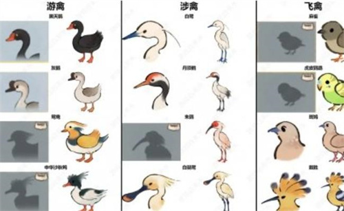 在这款游戏当中,分为游禽,涉禽,飞禽和走禽4个大类。