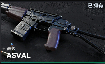 ASVAL的射程极其有限,子弹少,射速快,精准度和法玛斯一样很高,并且没有瞄准镜,适合近距离和贴脸作战,容错率较低,配件全带腰射即可。