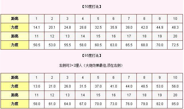 所谓半抛,也就是不用尽全力的抛射打法。半抛的基本角度是90度,根据距离减角度,力度始终是60。