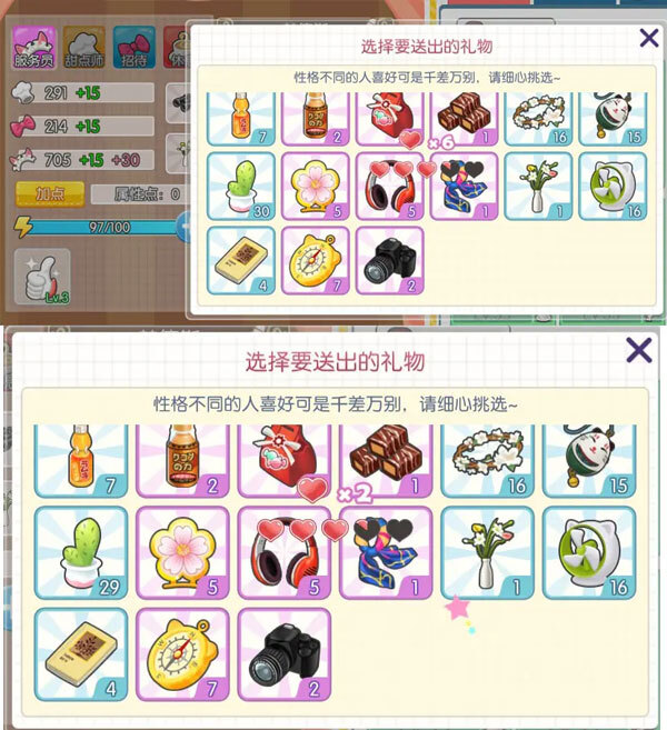 每位店员都有自己的嗜好品,赠送对应的嗜好品可以增加好感度,如果赠送的不是指定的嗜好品,增加的好感度数值会比赠送指定嗜好品所增加的数值少很多;